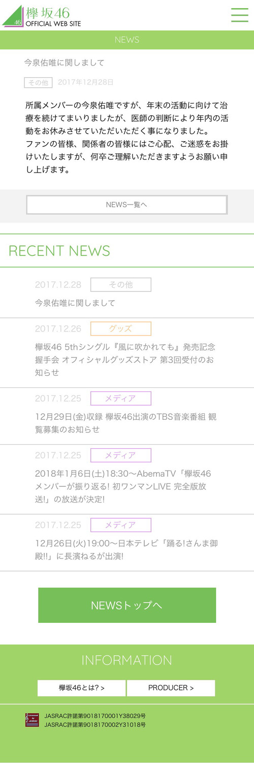2017年12月28日21710 まとめ 欅坂チャンネル 【欅坂46】ねるちゃん、初週9.8万か。やべーな。 0 0 0 2017年12月28日21708 まとめ 欅坂46まとめきんぐだむ 【欅坂46】ZIP!「SHOWBIZ RABBIT」コーナーでグループ注目度ナンバー1 長濱ねる特集!人気の秘密に迫る 0 0 0 2017年12月28日21703 まとめ 欅坂46まとめもり~ 長濱ねる、快挙!1st写真集『ここから』週間「9.8万部」を売り上げ白石麻衣に次ぐ歴代2位へ! 0 0 0 2017年12月28日21702 まとめ 欅坂46まとめちゃんねる 長濱ねる1st写真集『ここから』初週売上9.8万部でオリコン週間写真集部門第1位!乃木坂46 白石麻衣に次ぐ... 0 0 0 2017年12月27日21679 2017年12月28日21701 まとめ 欅坂46まとめもり~ 長濱ねる、激レア映像も!『ZIP!』で高校生クイズから猿腕までねるちゃん特集が放送! 0 0 0 2017年12月28日21748 まとめ 欅坂46速報(欅坂46乃木坂46まとめ) - 欅坂46 【欅坂46】長濱ねる1st写真集、初週9.8万の超絶大勝利!!!!! 0 0 0 2017年12月28日21700 まとめ 欅坂46まとめきんぐだむ 【欅坂46】乃木坂46 白石麻衣に次ぐ女性ソロ歴代2位!長濱ねる1st写真集『ここから』、初週売上9.8万部で... 0 0 0 2017年12月28日21699 まとめ 欅坂46まとめきんぐだむ 【欅坂46】今泉佑唯、医師の判断により年内休業。CDJ・レコード大賞・紅白などを欠席 0 0 0 2017年12月28日21693 まとめ 欅坂46まとめ処 【欅坂46】わーすた廣川奈々聖が小林由依との2ショット写真を公開 0 0 0 2017年12月28日21692 まとめ 欅坂46まとめ坂 【欅坂46】ずみこ、紅白出場できないのか…残念だけど体調第一に休養してほしいな 0 0 0 2017年12月28日21691 まとめ 欅坂46まとめスタジオ 【欅坂46】志田愛佳と菅井友香の「馬猫フレンズ」オフショットが公開! 0 0 0 2017年12月28日21689 まとめ 欅坂46まとめ坂 【欅坂46】ひらがなけやきちゃん、こんなに頑張ってるんだから報われてほしい 0 0 0 2017年12月28日21690 まとめ 欅坂46まとめ処 【欅坂46】今泉佑唯、年内の活動を休止 0 0 0 2017年12月27日21679 2017年12月28日21688 まとめ 欅坂46まとめもり~ 今泉佑唯、医師の判断により年内活動休止へ。 0 0 0 2017年12月28日21687 まとめ 欅坂46まとめちゃんねる 今泉佑唯、医師の判断により年内活動休止。紅白歌合戦の出場は見送りに 0 0 0 2017年12月28日21685 まとめ 欅って、何?-欅坂46まとめ 【欅坂46】今泉佑唯が医師の判断により年内の活動を休むことに。紅白歌合戦等の出演は見合わせへ 0 0 0 2017年12月28日21686 まとめ 欅坂46まとめラボ 【欅坂46】12/28発売『月刊エンタメ 2月号』晴れ着姿の渡辺梨加、渡邉理佐のクリアファイル、B2特大ポス... 0 0 0 2017年12月28日21684 まとめ 欅坂46まとめ坂 【欅坂46】さんま御殿、今後ほかのメンバーも出れるといいなあ 0 0 0 2017年12月28日21682 まとめ 欅坂46まとめスタジオ 【欅坂46】12月29日のこち星は長濱ねると佐藤詩織 が『ジャッジ!サイレントマジョリティー~~!』をお届け 0 0 0 2017年12月27日21679 まとめ 欅坂46まとめ坂 【欅坂46】一番バラエティー適正があるのってオダナナじゃないの? 0 0 0